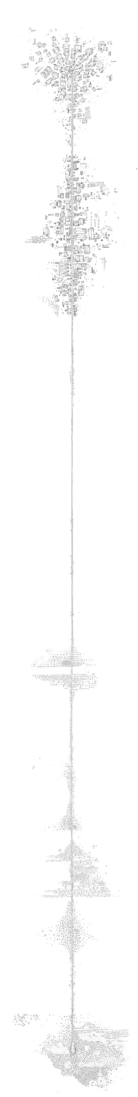 recuerdo aéreo de algún viaje ¿de qué tipo? / estilografo sobre papel / 30x400cm / fines de 2011
