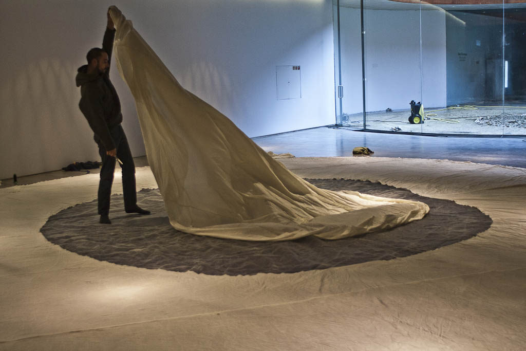 lavando o universo nos preparativos da montaxe da exposición O bosquexo do mundo , na Fundación Luís Seoane os próximos meses. Inauguración o 13 de marzo.
