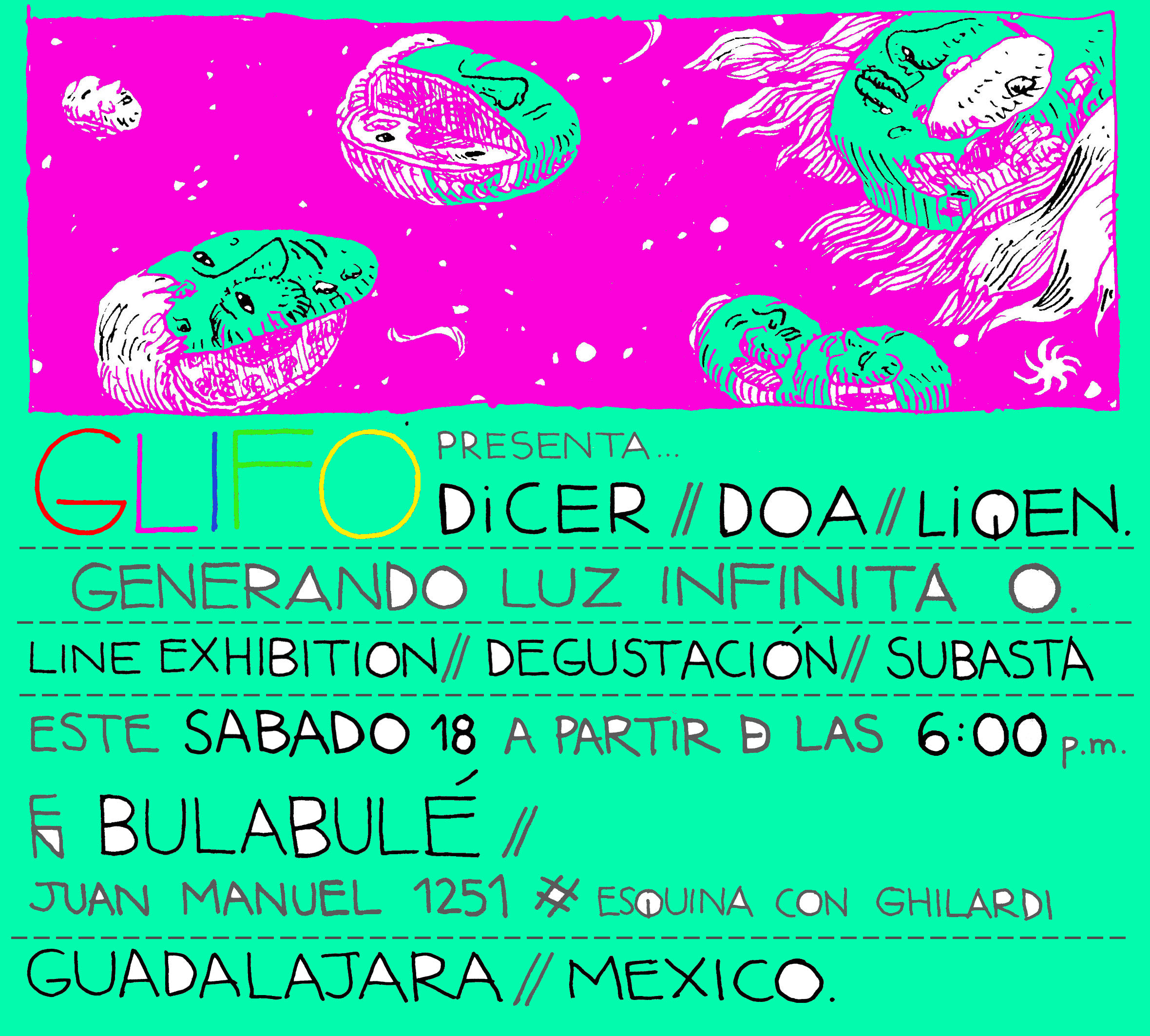 Esta exhibición es la presentación de GLIFO, una isla creciente en un mundo al borde del abismo , ahora es el principio y forma una base para creadores gráficos y muralistas , fundada entre Mexico y España. Glifo esta enfocado sobre todo a la ejecución de propuestas e intervenciones en espacios públicos.